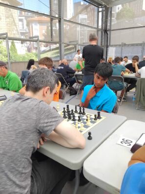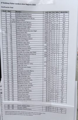 Lo pasamos genial y esta vez el peón mas destacado fue JULEN KORATTY con 6 puntos de los 8 posibles (subiendo del puesto 101 del ranking inicial al puesto 13 de la clasificación general, y llevándose así un importante premio, aunque su categoría aun es infantil) ; Julen demostró su seriedad, nivel, compromiso y evolución ¡¡¡ bravo Julen ¡¡¡ ; el resto disfrutaron de sus partidas a lo grande ( como no podía ser de otra manera esta semana) , aunque los resultados no fueran tan destacados como el de Julen …