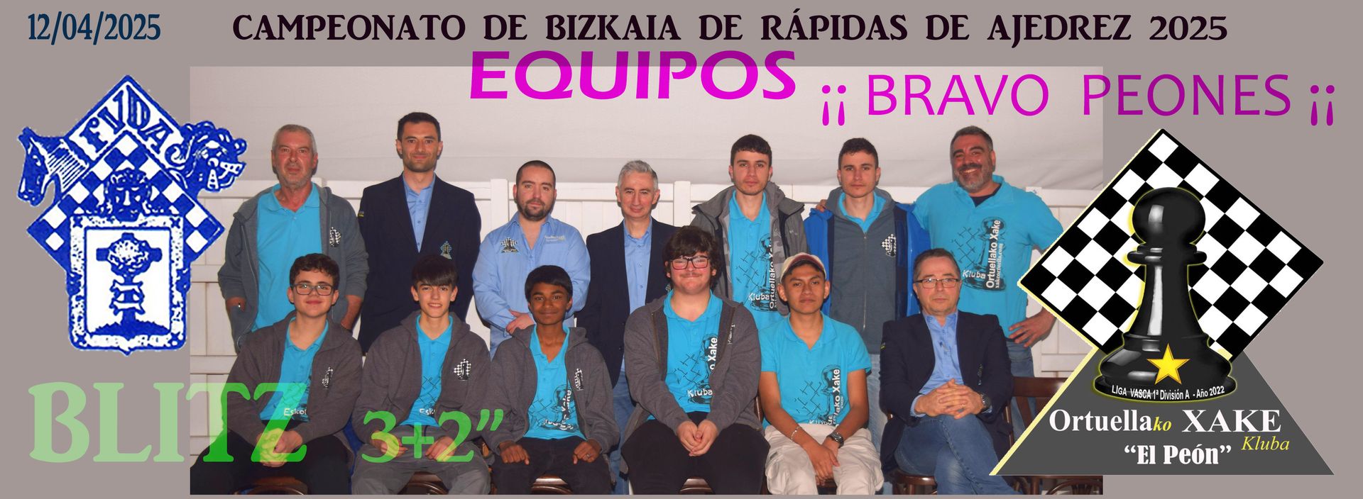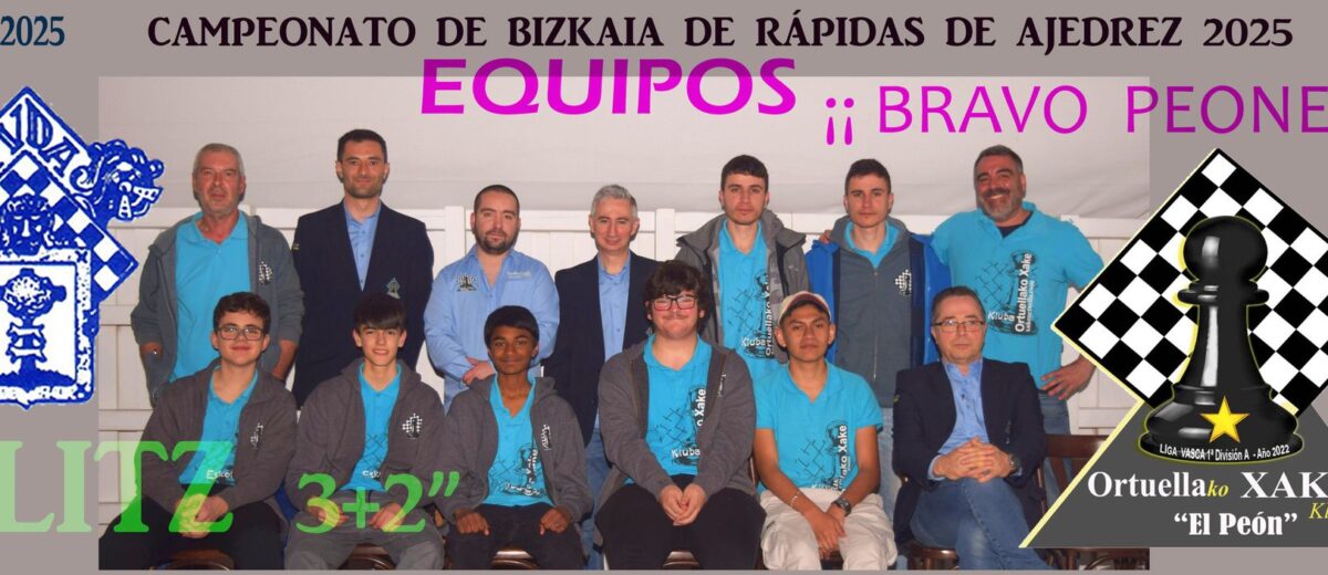 Hoy sábado, 12 de abril de 2025, LA TERMINAL de Zorrozaure de Bilbao ha sido testigo del emocionante Campeonato de Bizkaia de partidas rápidas por equipos. El Ortuellako Xake Kluba «El Peón» se presentó con tres equipos cargados de determinación y pasión por el juego: el equipo «A» liderado por Rodrigo Torre, Endika Redondo, Iker Abascal y Pablo Momoitio; el equipo «B» integrado por Julen Pilataxi, Toño Prieto, Ángel Momoitio, Isaac Zorrilla y Aitor Redondo; y el equipo «C», compuesto por los txabales (y alguno no tan txabal…) Ugaitz Etxeberria, Julen Koratty, Aitor Juárez, Eneko Etxeberria y Markel Vereda.