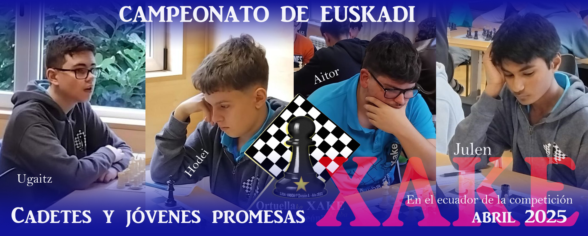 Tal y como adelantamos en la previa, Ortuellako Xake Kluba cuenta con representación en dos categorías: en Cadete, con Ugaitz Etxeberria y Aitor Juárez, y en Jóvenes Promesas, con Julen Koratty y Hodei Ríos.