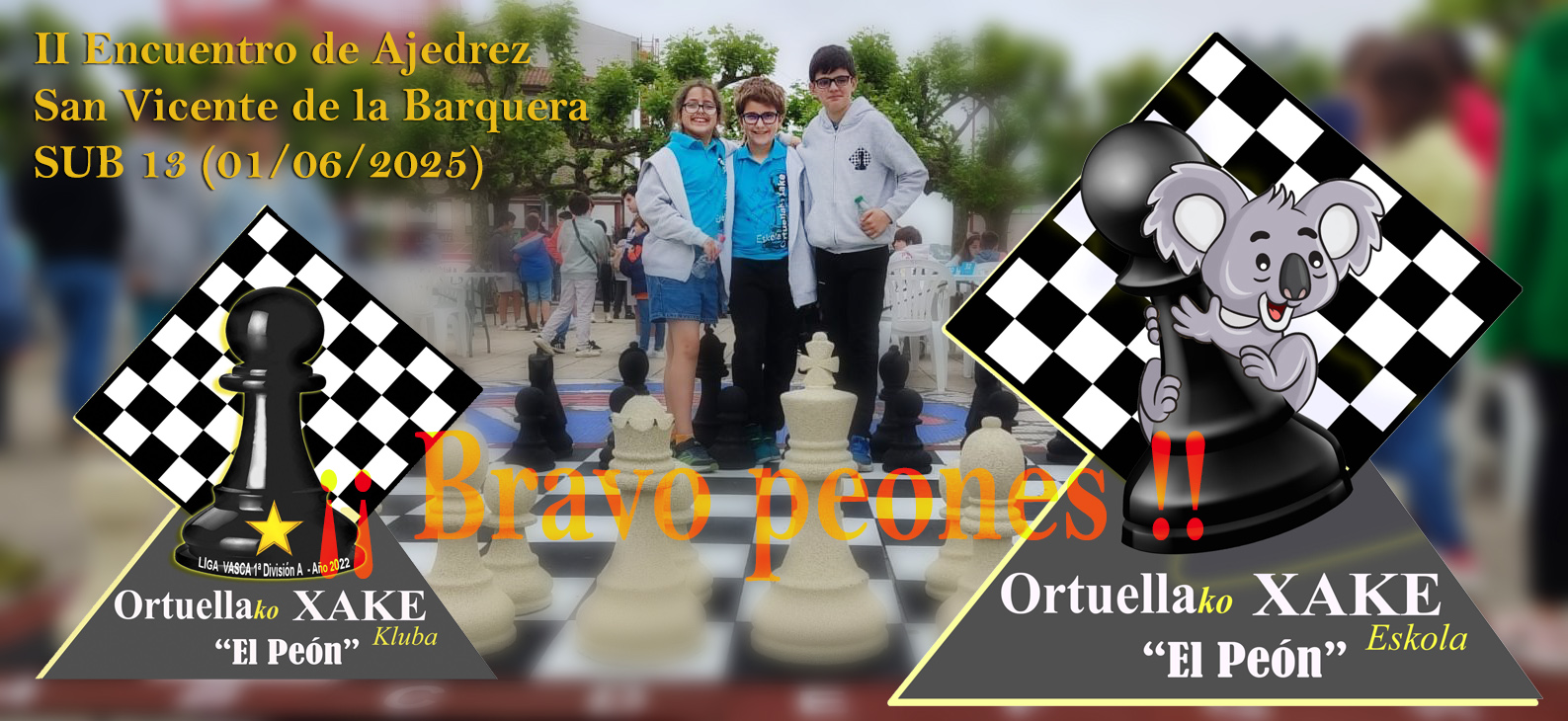 Hoy domingo día 01/06/2025 mientras los mayores (sub18) competían en Barakaldo, algunos de nuestros peques (Aiur, Julen e Iraia) pasaban el día en San Vicente de La Barquera, haciendo lo que mas les gusta, jugando al ajedrez y participaban en el II Encuentro de Ajedrez Villa de San Vicente de la Barquera SUB 13.