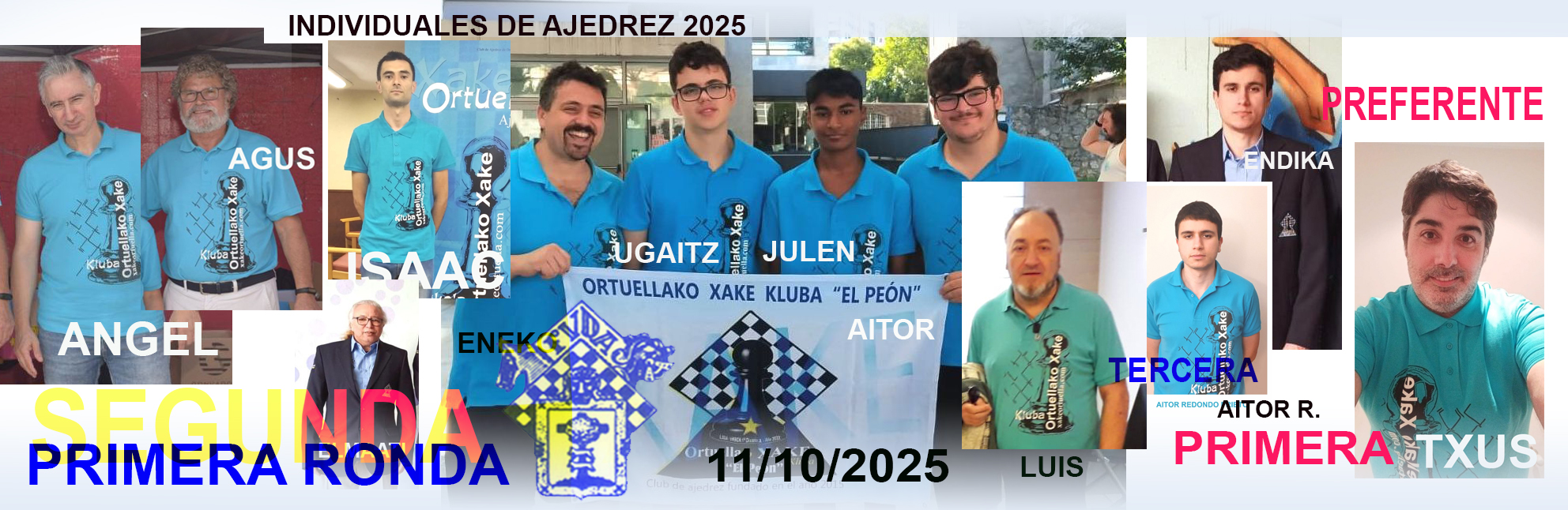 Un año mas nuestr@s peones trataran de subir de categoría (individual) en los campeonatos Individuales (valga la redundancia) organizados por la federación Bizkaia de ajedrez y que empiezan este próximo sábado 11/10/2025.