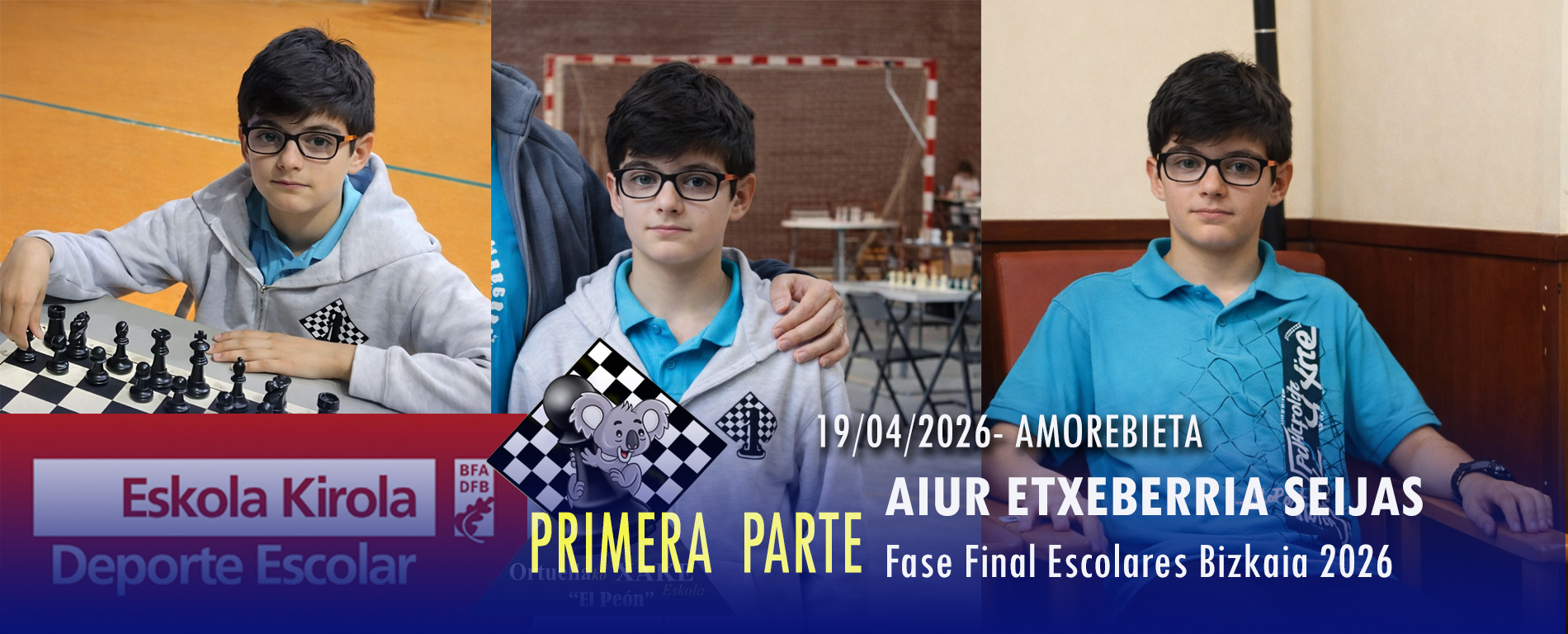Como ya avanzamos anteriormente, nuestro único clasificado en esta categoría, fue Aiur Etxeberria Seijas, quien hoy ha disputado tres partidas de los seis totales de las que consta el torneo , un ritmo de 45 minutos finish.