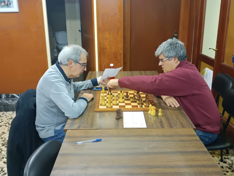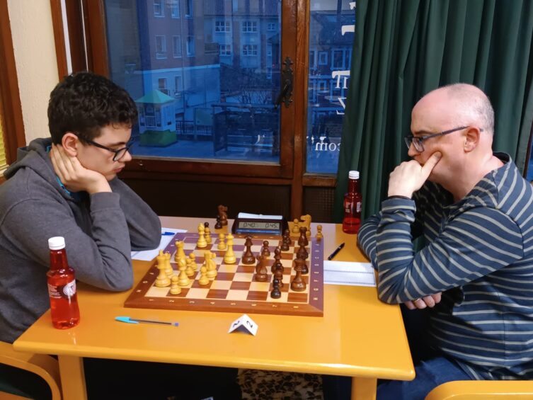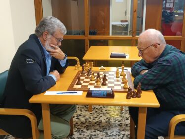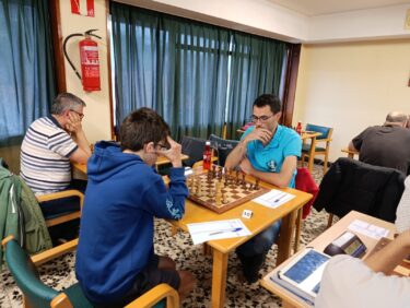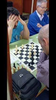 También ganaba, Eneko y Angel , aun que las opciones son remotas; Isaac y Aitor Juárez también perdían prácticamente sus opciones al caer derrotados en la tarde de ayer. Agus perdía en “la mejor partida de su vida” ( según él ,jejeje…) y dice que debería tener una sanción por el grave error cometido que le llevo a la derrota ; animo Agus ¡¡ ; seguro que habrá muchas mejores partidas , victorias y nuevas derrotas ; así es nuestro deporte , como la vida misma…