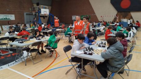 La semana pasada Aiur Etxeberria disputo tres partidas obteniendo dos puntos; hoy a jugado otras tres con el mismo resultado. Al final Aiur ha sacado 4 puntos de seis posibles y ha quedao en la 10 posición (TOP TEN ¡¡) de la clasificación final de este año en la que participaban 70 niñ@s de esta categoría. ¡¡ Bravo Aiur¡¡