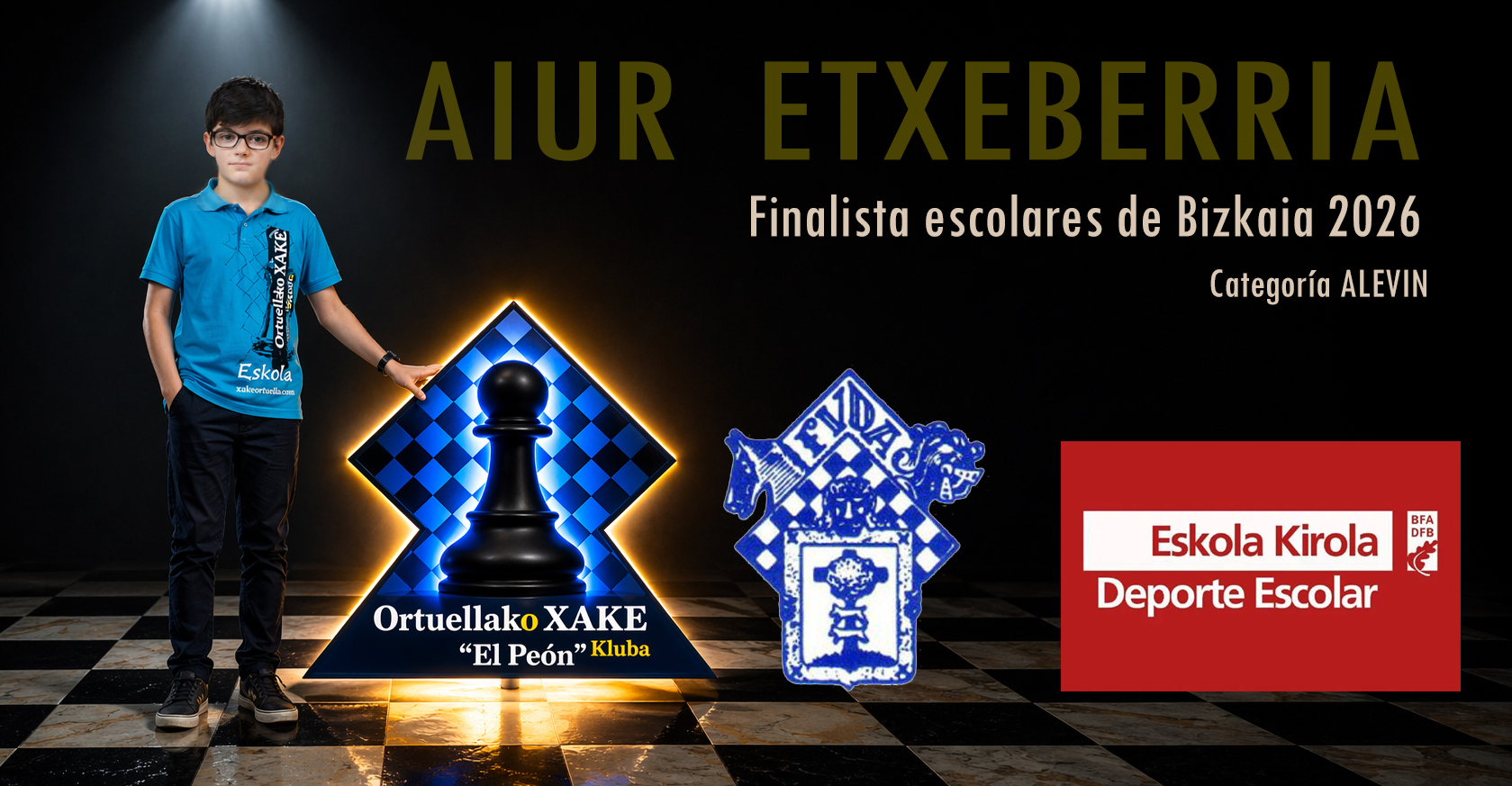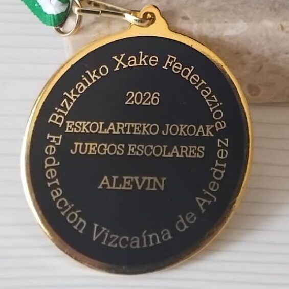 También hoy se jugaba en una única jornada la final en la categoría benjamin en la que también teníamos a otro peón clasificado Ibai Manrique. Hoy Ibai por causas de fuerza mayor no ha podido jugar, pero su compañero de club Aiur, le cogió su preciada medalla por haber llegado hasta esta fase final. Bravo Ibai¡¡¡
