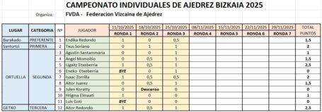 En preferente, en Barakaldo, Endika, después de una partida de mas de 5 horas contra la joven promesa de Sestao Ibai Garigorta conseguía entablar demostrando asi porque es el jugador numero 1 de nuestro club.