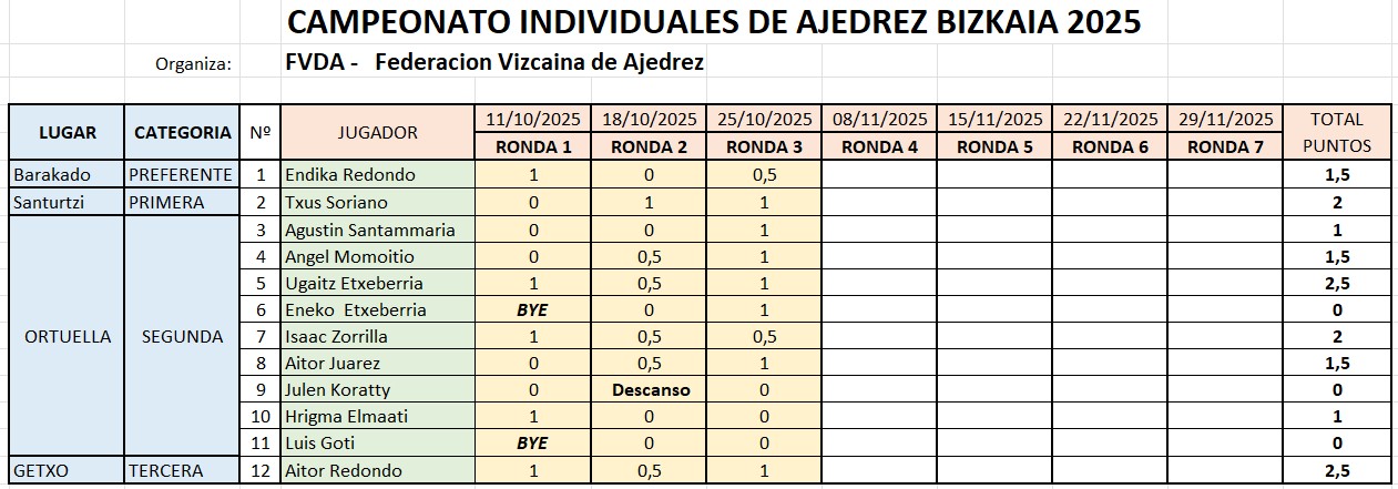 PREFERENTE >>> PRIMERA >>> SEGUNDA ORTUELLA >>> SEGUNDA DURANGO >>> TERCERA >>>