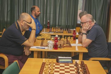 Ya en nuestra sede, en Ortuella, en un local que rebosaba ajedrez por sus cuatro costados, las partidas empezaban puntualmente a las 16:00 horas.