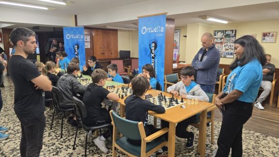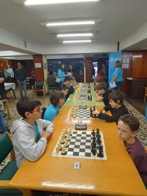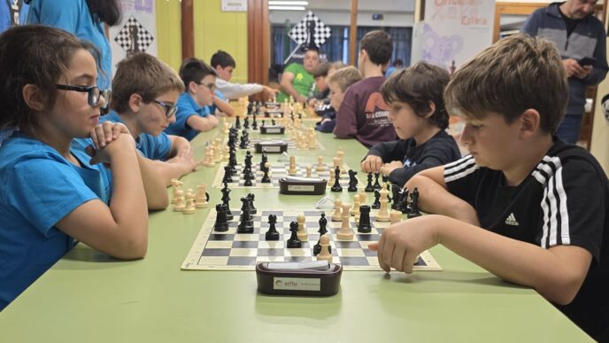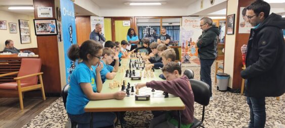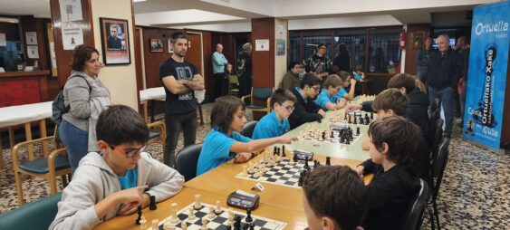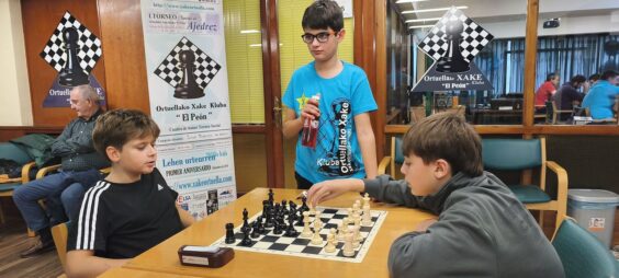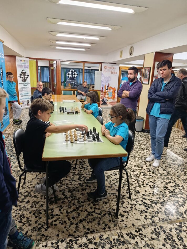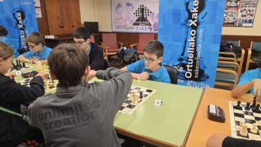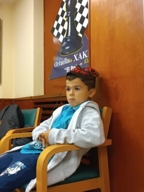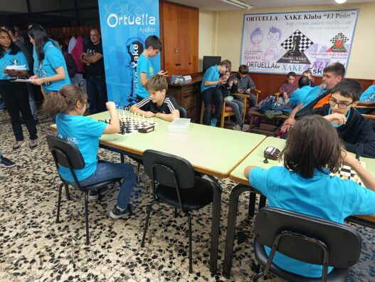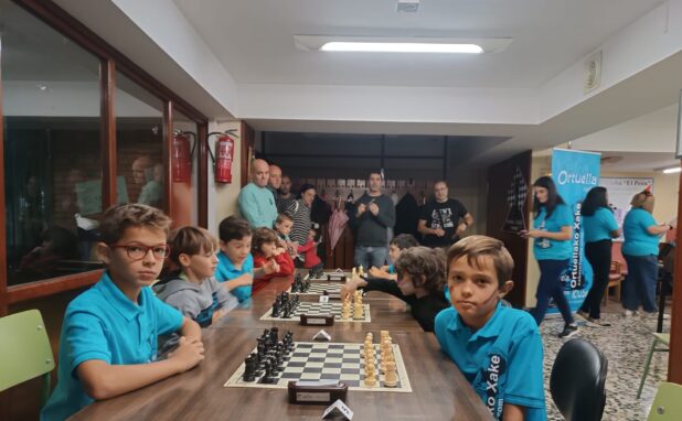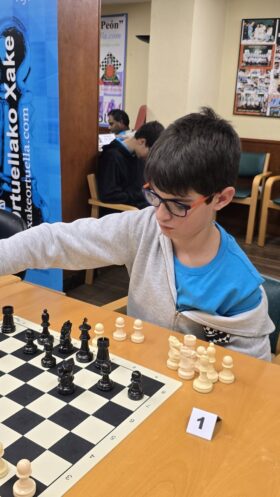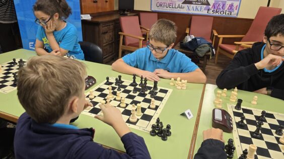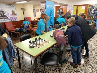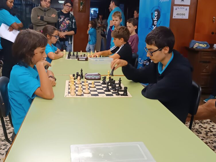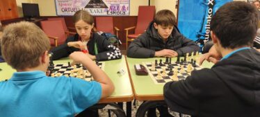 L@s niñ@s jugaron en dos grupos mas o menos equilibrado y por edades; 5 rondas a un ritmo de 10 minutos; para algun@s era la primera vez que jugaban con reloj, pero eso no fue ningún problema. En el grupo A el vencedor indiscutible con pleno de victorias fue Aiur Etxeberria; el segundo Josu Morales y el tercer clasificado Eryx Dominguez quienes tuvieron que jugar una ronda adicional para poder desempatar contra Iraia Alvarez y Ander Martin.