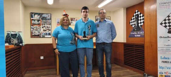 El de l@s adult@s fue un emocionante torneo de 9 rondas a ritmo de Blitz (3+2) en el cual participamos 20 jugador@s ; y el trofeo del Peón se lo llevo finalmente el jugador “Number One” de nuestro club, ENDIKA REDONDO. Tuvimos algunos invitados habituales, Javi y Marco de Gallarta y Juan Carlos, jugador independiente; el resto éramos peones …