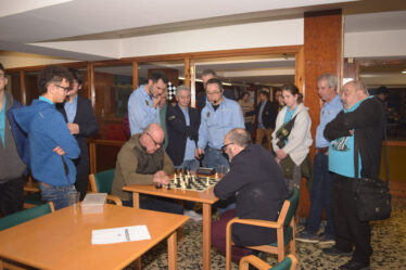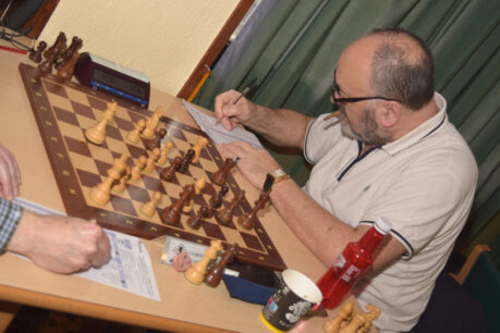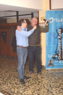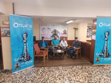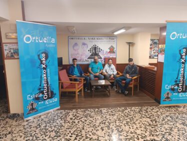Por ultimo nuestro equipo “E” que jugaba fuera en Santurtzi, contra su equipo “H” y caía contundentemente. Perdía Elmaati de primero; perdía Roberto de segundo, perdía Pepe de tercero y solo salvaba nuestro honor Joseba Regueras de cuarto tablero que ganaba …. Ortuella “E” 1 – Santurtzi “H” 3.